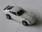 | Massstab | 1:64 |  durchsichtige Scheiben, schwarzes Interieur, Scheibenwischer, Rückspiegel auf den Kotflügeln montiert und Kotflügelverbreiterungen. Silber eingefärbte Stossstangen, Heckspoiler, Scheibenrahmen und Heckblende. Kolorierte Lichter mit Glasabdeckungen auf den Scheinwerfern. Stahlfelgen mit Originalraddeckel und Profilgummi-Reifen. Fahrzeug aus der Serie Zeitschrift Model-Cars aus Japan