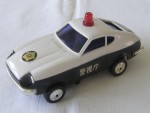 | Massstab | 1:35 |  blaue, nicht durchsichtige Scheiben mit verzerrter Karosserie. Chrom Stossstangen, Heckpartie und Scheinwerfer. Einsatzfahrzeug der Japanischen Polizei mit rotem Drehlicht auf dem Dach und Hoheitszeichen auf den Seiten der Heckklappe und in Gold auf der Motorhaube. Batteriebetriebener Anstossmotor nicht geprüft. Chrom-5-Steg-Felgen mit Hartplastikräder