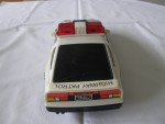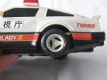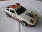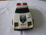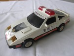 | Massstab | 1:16 |  schwarze, nicht durchsichtige Scheiben, Doppelrohrauspuff und Stossstange-Bodengruppe-Einheit. Rückspiegel, an der A-Säule angebracht und aufgesetzter Heckspoiler in Wagenfarbe. Aufklappbare, schwarze Klappscheinwerfer (fehlen). Auf der Motorhaube grau-schwarz-gold-rote Aufkleber mit den Aufdrucken "Police Nissan". Auf der Frontscheibe den weiss-schwarzen Aufdruck "High Way Patrol". Auf den Seiten die schwarz-weiss-roten Aufkleber "Polizei Fairlady Z Turbo". Auf dem Dach eine rote Lichtbar. Auf dem Heckspoiler den schwarz-weissen Aufkleber mit dem Aufdruck "High Way Patrol". Als Nummernschild den rot-schwarz-weissen Aufdruck "Fairlady Z 300 ZX". Kolorierte Lichter. Batteriebetriebenes Fahrzeug mit Anstossmotor. Weisse 3-Steg-Felgen mit Hartplastikräder. Fahrzeug hat Gebrauchsspuren wie der nur noch verklebte Batteriefach-Deckel und die Fuktionen sind nicht geprüft