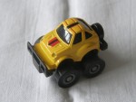 | Massstab | 1:98 |  schwarze, nicht durchsichtige Scheiben und angedeutete Targa-Dächer. Stark verzerrte Metallkarosserie mit schwarzem Rammschutz vorne und hinten, samt darin montiertem, beweglichem Reserverad. Hoch gebaut als Big-Foot. Schwarze Bodengruppe. Auf der Motorhaube und dem Dach schwarz-rote Streifen. Graue 7-Steg-Felgen mit Gummi-Reifen und Pull-Back-Antrieb