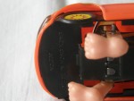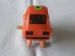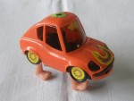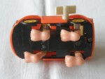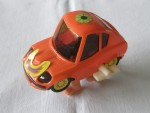 | Massstab | 1:45 |  hellbraune, nicht durchsichtige Scheiben, schwarze Stossstangen und Lichter. Auf der Motorhaube ein gelb-violetter Kleber und auf dem Dach ein grüner Blumenkleber. Die asiatische Antwort auf Fred-Feuerstein's Fahrzeug mit vier pinken Füssen die mit einem Uhrwerkantrieb (funktioniert) das verzerrte  Spassmobil bewegen. Die Räder im gelben Sonnendesigne sind nur zur Zier vorhanden und sind ohne Funktion