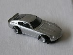 durchsichtige Scheiben, schwarzes Interieur, Kotflügelverbreiterungen und Frontspoiler. Silberne Scheibenrahmen und Heckbblende, ohne Heckstossstange. Kolorierte Lichter mit Glasabdeckungen auf den Scheinwerfern. Vieraugen-Rücklichter rund. Silberne 4-Steg-Felgen mit Profilgummi-Reifen