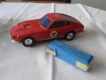 | Massstab | 1:17 |  blaue, nicht durchsichtige Scheiben. Chrom Stossstangen und  Lichter. Auf der Motorhaube ein weisser Knopf (fehlt) mit der Startnummer 7. Auf den Seiten ein runder, weiss-gelber Aufkleber mit der schwarzen Startnummer 7. Über dem Dach und der Heckklappe weiss-schwarze Karro-Muster-Aufkleber. Hinten rechts die Funkantenne für die batteriebetriebene Fernsteuerung mit Anstossmotor. Chrom-5-Steg-Felgen im Wolfrace-Design und Profilgummi-Reifen