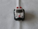 schwarze, nicht durchsichtige Scheiben. Einsatzfahrzeug der Japanischen Polizei mit Hoheitszeichen und Rotlicht auf dem Dach. Fahrzeug aus der Mini-Transformer-Serie. Silbergraue 4-Doppelsteg-Felgen mit Hartplastikräder |