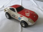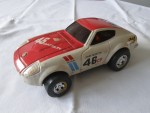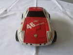 | Massstab | 1:20 |  rötliche, nicht durchsichtige Scheiben, mit verzerrter Blech-Karosserie. Chrom-Stossstangen- (vordere fehlt), Heckblenden-Einheit und Scheinwerfer. Dem Rennfahrzeug des John Morton-BRE-Tems nachemfpfunden, mit der legendären Startnummer 46 und mit Werbeaufdrucken. Chrom-5-Steg-Felgen, im  Wolfrace-Design und Hartgummireifen, mit Schwungrad-Antrieb auf die Vorderräder