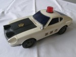 | Massstab | 1:16 |  blaue, nicht durchsichtige Scheiben schwarze Heckblende und Motorhaube mit zwei Zusatzscheinwerfern. Chrom Stossstangen und Suchscheinwerfer vor der A-Säule links, ohne Funktion sowie Scheibenrahmen. Kunststofffahrzeug, einem Einsatzfahrzeug der Japanischen Polizei, mit rotem Drehlicht auf dem Dach, nachempfunden und mit Hoheitszeichen. Batteriebetriebener Anstossmotor. Kolorierte Lichter. Graue 5-Steg-Felgen mit Hartplastikräder. Unbekannter Hersteller aber identische Bauart wie die Alps-Toys. Bespielt aber komplett