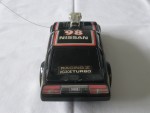 | Massstab | 1:18 |  schwarze, nicht durchsichtige Scheiben und aufgesetzter Heckspoiler. Aufklappbare Klappscheinwerfer und weisse, vordere Stossschiene. Aus der Motorhaube ragt ein verchromter Kompressor, rot-weiss-silberne Streifen und diverse Aufdrucke wie "Tune UP Turbo Plasma VG30ET Tuning". Auf der Frontscheibe ein schwarz-goldener Aufkleber mit dem Aufdruck "Super Charger No. 1". Auf den Seiten rot-weiss-silber-goldene Streifen mit dem Aufdruck "300 ZX Fairlady Z VG Racing Z", sowie Werbeaufkleber. Auf dem Dach rot-golden-weisse Aufkleber mit dem weissen Aufdruck "Nissan" und der rot-weissen Startnummer 98. Auf der Heckscheibe ein golden-weisser Aufkleber mit dem Aufdruck "Racing Z VG30E Turbo". Kolorierte Lichter. R/C Antenne ist vorne links angebracht. Batteriebetriebenes Funkfernsteuer-Fahrzeug. Chrom-12-Steg-Felgen mit Gummi-Reifen und lenkbare Vorderräder. Fahrzeug ist sehr bespielt und es fehlt die Abdeckung des Batteriefachs und die Funktion ist nicht geprüft