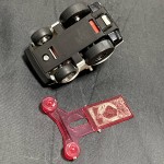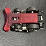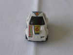 | Massstab | 1:87 |  schwarze, nicht durchsichtige Scheiben und Bodengruppe. Rückspiegel in Wagenfarbe an der A-Säule angebracht. Auf der Motorhaube gold-rot-blau-schwarze Aufkleber mit den Aufdrucken "Choro-Q Racing" mit der Startnummer 6. Auf dem Dach ein blau-gelb-roter Aufkleber mit dem Aufdruck "Choro-Q". Schwarze, unbedruckte Heckplatte. Chrom-5-Steg-Felgen mit Gummi-Reifen und Pull-Back-Antrieb. Mit der auf der Bodenplatte angebrachten, abnehmbaren Frührungsschiene kann das Auto auf einer geführten Rampe fahren