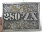 | Massstab | 1:100 |  Gürtelschnalle rechteckig aus massiver Bronze, mit dem Schriftzug als Relief "280-ZX". Limitierte Ausgabe von 1979 zur Vorstellung des Typs in den USA Nr. 105 von 280 Stück, mit der Originalunterschrift von Mr. Katayama, dem Ziehvater der Fairlady Typenreihe. Kann mit speziellem Gürtel mit Klickhalterungen getragen werden