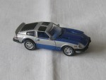 | Massstab | 1:60 |  durchsichtige Scheiben, blaues Interieur. Schwarze Heckjalousie, Stossstangen, angedeutete, schwarze Targa-Dächer und Scheibenwischer. Zweifarbenlackierung mit Rückspiegel an der A-Säule montiert, Naga-Öffnungen auf der Motorhaube und aufgesetzter Heckspoiler in Wagenfarbe. Kolorierte Lichter. Silberne-5-Doppelsteg-Felgen mit Profilgummi-Reifen, als Turbo-Variante. Fahrzeug aus der 2-Packs Import Heat, Release 3 Serie, zusammen mit einem weissen 1982-er Mazda RX 7