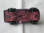 durchsichtige Scheiben, schwarzes Interieur, mit Hart-Top geschlossenes Convertible. Rückspiegel in Wagenfarbe auf den Kotflügeln montiert. Auf den Seiten Streifen in pink mit Aufdruck "Datsun" und der Startnummer 54. Schwarze Stahlfelgen mit grünlichem Zier-Ring und Hartplastikräder |