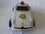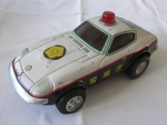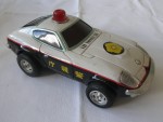 | Massstab | 1:20 |  rötliche, nicht durchsichtige Scheiben. Verzerrte Blechkarosserie. Chrom-Stossstangen, Heckblende-Leuchten-Einheit, Scheinwerferabdeckungen und Emblem. Einsatzfahrzeug der Japanischen Polizei mit rotem Drehlicht auf dem Dach und Hoheitszeichen auf der Motorhaube, den Seiten und der Heckklappe. Chrom-5-Stegfelgen, im Wolfrace-Design, Hartgummi-Reifen und Schwungrad-Antrieb auf die Hinterräder. Leicht bespielt aber komplett