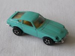 durchsichtige Scheiben, gelbes Interieur mit schwarzem Steuerrad. Chrom Stossstangen-, Kühlergrill- und Leuchten-Einheiten. Chrom-5-Steg-Felgen mit Hartplastikräder. Der Chromscheinwerfer rechts fehlt, ansonsten leicht bespielt |
