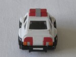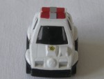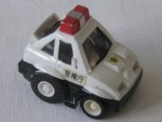 schwarze, nicht durchsichtige Scheiben, Kotflügelverbreiterungen und Stossstangen sowie weissem, aufgesetztem Heckspoiler. Einsatzfahrzeug der Japanischen Polizei mit Hoheitszeichen und roter Lichtbar auf dem Dach. Kolorierte Rücklichter. Weisse 7-Steg-Felgen mit Gummi-Reifen und Pull-Back-Antrieb. Bauart wie Choro Q und Dil |