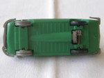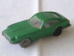 durchsichtige Scheiben, angedeutetes graues Interieur Stossstangen-Heckblendeneinheit und Frontstossstange. Vermutlich gebauter Plastik-Bausatz mit Antrieb auf die Hinterräder. 2 graue und 2 schwarze Plastik-Räder. Sehr einfaches Plastik-Modellauto aus nicht geklärter Herkunft bzw. unklarem Hersteller |