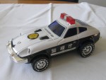 | Massstab | 1:18 |  blaue, nicht durchsichtige Scheiben und verzerrte Karosserie. Chrom-Stossstangen-Heckleuchten-Einheit, Stossschutzleisten auf den Seiten, Scheinwerfer und Embleme auf der Motorhaube. Silberne Scheibenrahmen. Schwarze Entlüftungsgitter auf der Motorhaube. Einsatzfahrzeug der Japanischen Polizei mit roter Lichtbar auf dem Dach und Hoheitszeichen in gold-schwarz-weiss auf der Motorhaube, den Seiten und der Heckklappe. Chrom-6-Doppel-Steg-Felgen mit Schwungrad-Antrieb