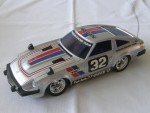 | Massstab | 1:20 |  blaue, nicht durchsichtige Scheiben. Schwarze Stossstangen, Rückspiegel auf den Kotflügeln montiert und Entlüftungsgitter auf der Motorhaube. Stossschutzleisten auf den Seiten in Wagenfarbe. Lichter in Chrom. Einem Rennfahrzeug nachempfunden, mit diversen rot-blau-weissen Streifen, mit diversen Werbeklebern wie "Nissan Racing Team" und der schwarz-weissen Startnummer 32 auf dem ganzen Auto. Antenne hinten links. Batteriebetriebenes Funkfernsteuer-Auto, in der 40 Mhz Konfiguration, mit Fernsteuerung. Lenkbare Chrom-4-Steg-Felgen mit Profilgummi-Reifen
