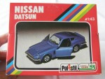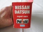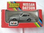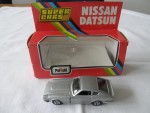 durchsichtige Scheiben, schwarzes Interieur und zu öffnenden Türen. Chromstossstangen hinten und vorne komplett sowie schwarze Bodenplatte. Glasscheinwerfer vorne. Chrom-5-Steg-Felgen mit Harplastikräder. Fahrzeug aus der Nissan/Datsun Super Cars Serie |