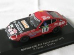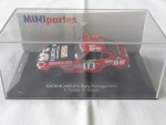 | Massstab | 1:43 |  durchsichtige Scheiben, schwarzes Renninterieur mit Überrollbügel, Reserverad im Kofferraum, Rückspiegel an der A-Säule montiert, Kotschutzlappen hinten und Scheibenwischer. Chrom-Stossstangen mit Zusatzscheinwerfern vorne. Dem 1975-er Rallyfahrzeug der Rally Portugal, mit den Fahrern P. Cortêz und T. Gomes, mit der Startnummer 16, nachempfunden, mit diversen Werbeaufdrucken. Kolorierte Lichter. Schwarze 4-Doppelsteg-Felgen mit Profilgummi-Reifen. Fahrzeug aus der MINIparts Rennfahrzeug Serie mit Teilnehmer aus Portugal Rennen