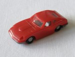 durchsichtige Scheiben, graues Interieur und Bodenplatte-Stossstangeneinheit, mit Japanischen Schriftzeichen. Chrom-5-Steg-Felgen-Kleber mit Hartplastikräder. Sehr einfaches Kunststoff Kinderspielzeug, vermutlich ein Auto als Choco-Ei-Ăberraschung |