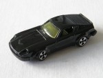 gelbliche, durchsichtige Frontscheibe und schwarze Heckjalousie, Stossstangen, Interieur und Kotflügelverbreiterungen. Chrom-4-Steg-Felgen mit Hartplastikräder. Leicht bespieltes aber komplettes Kinderspielzeugauto |