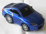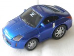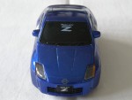 schwarze, nicht durchsichtige Scheiben, angedeutete Scheibenwischer und Kühlergrill. Rückspiegel in Wagenfarbe an der A-Säule angebracht. Verzerrte Karosserie. Silberne Türgriffe. Auf der Frontscheibe den weissen Aufdruck "Fairlady Z". Kolorierte Lichter. Silbergraue 7-Steg-Felgen mit Profilgummi-Reifen und Pull-Back-Antrieb. Einzelfahrzeug identisch zum 9 teiligen Set Nissan Limited Fairlady