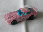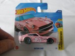 bläuliche, durchsichtige Scheiben und weisses Linkslenker-Interieur. Bordeauxfarbene, vernietete Kunststoffbodenplatte. Auf der Motorhaube ein Zweig eines blühenden Kirschbaums. Auf den Seiten ein weiterer Zweig eines blühenden Kirschbaums mit einem weissen Kreis im Hintergrund und dem weissen Aufdruck 240 Z sowie dem Hot Wheels Logo. Auf dem Dach ein weisser Kreis und dem Buchstaben "T". Schwarze 5-Doppel-Steg-Felgen mit blauem Zierring und Hartplastikräder. Fahrzeug aus der 2025-ere Art Cars Véhicle Artistiques, zweite Farbvariante