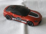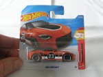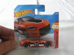 dunkle, durchsichtige Scheiben mit schwarzem Linkslenker-Interieur, Dach, Frontspoilerlippe, Schweller, Heckdiffusor, Kühlergrill und vernietete Kunststoffbodenplatte. Rückspiegel in Wagenfarbe an der A-Säule angebracht. Auf der Motorhaube ein schwarz-weisser Streifen. Auf den Seiten schwarz-weisse Streifen und die schwarz-weisse Startnummer 23 sowie das schwarze Hot Wheels Logo. Kolorierte Lichter. Schwarze, 5-Doppel-Steg-Felgen mit Chromzierring und Hartplatikräder. Fahrzeug aus der 2026-er Then And Now Serie