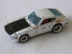 | Massstab | 1:60 |  durchsichtige Scheiben, rot-schwarzes Interieur. Mattschwarze Motorhaube und Kühlergrill und Entlüftungsgitter vor der Frontscheibe. Auf dem Auto verteilte Rost-Flecken. Kolorierte Rücklichter. Weisse 5-Steg-Felgen aufbereitet mit Gummireifen. Individuell erstelltes, superschönes Einzelstück von einem Hot-Wheels Basismodellauto (243/250)