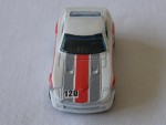 bläuliche, durchsichtige Scheiben und schwarzes Interieur. Auf der Motorhaube und den Seiten silber-rote Streifen mit der schwarzen Startnummer 120. Chrom-5-Doppelsteg-Felgen mit Hartplastikräder |