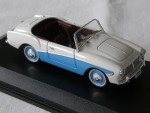 offenes, 4-sitziges Convertible mit bordeauxfarbigem Interieur. Mit zweifarbiger Karosserie und silbernen Elementen beim Kühlergrill, Scheibenwischern, den Stossstangen und den Scheinwerfern. Kolorierte Lichter. Stahlfelgen mit Chromraddeckeln und Weisswand-Gummi-Reifen |