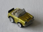 durchsichtige Frontscheibe, 2-sitziges, offenes Convertible mit Soft-Top unter der cremefarbigen Persenning. Auf der Heckplatte der Aufdruck in weiss und hellblau "Chibikko Choroq Fairlady SR 311 No. 13". Kolorierte Lichter und Pull-Back-Antrieb mit Chrom-8-Steg-Felgen und Gummi-Reifen |