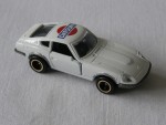 durchsichtige Scheiben, schwares Interieur, silberne Kotflügelverbreiterungen und Stossstangen sowie zu öffnende Türen. Auf dem Dach ist in blau-rot das Firmenlogo "Datsun" aufgedruckt. Glasabdeckungen auf den Scheinwerfern. Schwarze 5-Steg-Felgen mit Gold-Chromzierring und Hartplastikräder. Sonderserie "Datsun" |