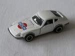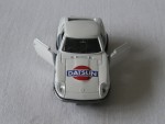 durchsichtige Scheiben, schwares Interieur, silberne Kotflügelverbreiterungen und Stossstangen sowie zu öffnende Türen. Auf der Motorhaube ist in blau-rot das Firmenlogo "Datsun" aufgedruckt. Glasabdeckungen auf den Scheinwerfern. Schwarze 5-Steg-Felgen mit Gold-Chromzierring und Hartplastikräder. Sonderserie "Datsun" |
