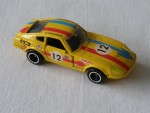 | Massstab | 1:60 |  durchsichtige Scheiben, schwarzes Interieur, Kotflügelverbreiterungen und Stossstangen in Wagenfarbe sowie zu öffnende Türen. Einem Rennfahrzeug der Japanischen Meisterschaft nachempfunden. Auf dem ganzen Auto rot-gelbe Streifen mit der weiss-schwarzen Startnummer 12, auf der Motorhaube und den Seiten, mit dem Fahrer "K. Takahashi". Gelbe Scheinwerferabdeckungen. Schwarze 5-Steg-Felgen mit Chrom-Zierring und Hartplastikräder