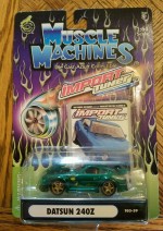 | Massstab | 1:60 |  durchsichtige Scheiben, orange-schwarzes Interieur mit Lachgas-Flaschen im Kofferraum. Zu öffnende Motorhaube mit Motorapplikation und Dom-Strebe. Auf der Frontscheibe ein orange-goldener Kleber mit dem Aufdruck "Import Tuner". Auf der Motorhaube ein goldenes Oval mit dem Aufdruck "R-1". Auf den Seiten die goldenen Aufdrucke "Nitto und www.muscelmachines.com" und Werbeaufkleber. Auf dem übergrossen Heckspoiler den Aufdruck "Tenzo R Racing Sports". Verchromte 2-flutige Auspuffanlage und diverse Details auf der Bodenplatte. Kolorierte Lichter. Goldene 5-Steg-Felgen mit Profilgummi-Reifen. Fahrzeug aus der Muscle Machines Import-Tuner-Serie