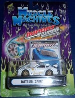 | Massstab | 1:60 |  durchsichtige Scheiben, orange-schwarzes Interieur mit Lachgas-Flaschen im Kofferraum. Zu öffnende Motorhaube mit Motorapplikation und Dom-Strebe. Auf der Frontscheibe ein orange-goldener Kleber mit dem Aufdruck "Import Tuner". Auf der Motorhaube ein goldenes Oval mit dem Aufdruck "R-1". Auf den Seiten die goldenen Aufdrucke "Nitto und www.muscelmachines.com" und Werbeaufkleber. Auf dem übergrossen Heckspoiler den Aufdruck "Tenzo R Racing Sports". Verchromte 2-flutige Auspuffanlage und diverse Details auf der Bodenplatte. Kolorierte Lichter. Goldene 5-Steg-Felgen mit Profilgummi-Reifen. Fahrzeug aus der Muscle Machines Import-Tuner-Serie