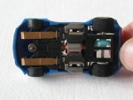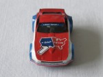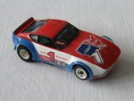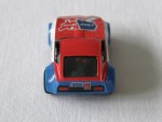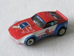 durchsichtige Scheiben, ohne Interieur und Karosserie, die an einen verbreiterten Datsun 240 Z, als Rennfahrzeug erinnert für die H-0 Slot-Rennbahn. Auf der Karosserie sind Aufdrucke "BAP/Geon" und die Umrisse der USA sowie diverse Werbeaufdrucke sowie die Startnummer 1, vorhanden. Weisse 5-Steg-Felgen mit Weichgummi-Reifen |