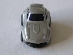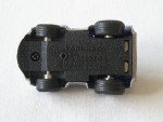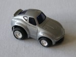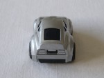bläuliche, nicht durchsichtige Scheiben mit verzerrter Karosserie. Aufgesetzter Heckspoiler, Kotflügelverbreiterungen und Scheinwerferabdeckungen in Wagenfarbe. Chrom-12-Steg-Felgen mit Profilgummi-Reifen und Pull-Back-Antrieb