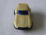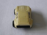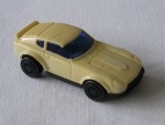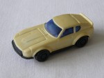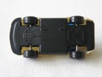 bläuliche, nicht durchsichtige Scheiben. Heckjalousie, aufgesetzter Heckspoiler und Kotflügelverbreiterungen nicht farblich abgesetzt. Schwarze Bodenplatte ist auch gleichzeitig die Stossstangen- Kühlergrill- Rückleuchteneinheit. Schwarze 12-Steg-Felgen mit Hartplastikräder. Einfaches Kunststoffkinderspielzeug mit abgebrochener A-Säule rechts |