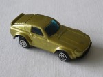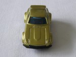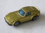 bläuliche, nicht durchsichtige Scheiben. Heckjalousie, aufgesetzter Heckspoiler und Kotflügelverbreiterungen in Wagenfarbe. Schwarze Frontstosstangen-Kühlergitter-Einheit. Modellauto als Spitzer vorgesehen. Chrom-8-Steg-Felgen mit Hartplastikräder. Leichte Gebrauchsspuren |