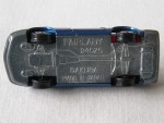 durchsichtige Scheiben, rotes Interieur und zu öffnende Türen. Bodenplatte ist auch gleichzeitig die Stossstangen- Kühlergrill- Rückleuchteneinheit. Chrom-6-Steg-Felgen mit Hartplastikräder |