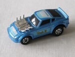 | Massstab | 1:59 |  schwarze, nicht durchsichtige Scheiben und Heckjalousie. Kotflügelverbreiterungen, aufgesetzter Heckspoiler, Scheinwerferabdeckungen und Stossstangen in Wagenfarbe. Auf dem Dach blau-hellblau-weisse Streifen und den blauen Aufdruck "Tomica". Auf den Seiten den hellblau-gelben Aufdruck "Dash Z". Aus der Motorhaube schaut ein verchromter V-6 Motor mit Kompressor und langen Auspuffrohren hervor. Chrom-6-Steg-Felgen mit Gummi-Reifen. Fahrzeug aus der Tomica-Dash Serie von 1977