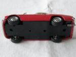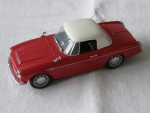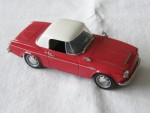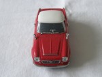 2-sitziges, mit weissem Hart-Top geschlossenes Convertible und schwarzem Interieur. Silberne Rückspiegel auf den Kotflügeln montiert. Mit einfarbiger Karosserie und silbernen Elementen beim Kühlergrill, den Stossstangen, Scheibenwischern, Türgriffen und den Scheinwerfern. Kolorierte Lichter. Stahlfelgen mit Chromraddeckeln und Profilgummi-Reifen |
