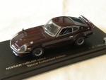 | Massstab | 1:43 |  durchsichtige Scheiben, schwarzes Interieur und Heckblende. Chrom-Rückspiegel auf den Kotflügeln montiert, Scheibenrahmen, Scheibenwischer, Türgriffe und Embleme. Aufgesetzter Heckspoiler, Kotflügelverbreiterungen und Frotspoiler in Wagenfarbe, Kolorierte Lichter mit Glasabdeckungen auf den Scheinwerfern. Dunkelgraue 8-Steg-Felgen mit Chrom-Tiefbett und Profilgummi-Reifen. Fahrzeug aus der weltweit auf 1500 Stk. limitierten Car-Nel Special-Customised Edition