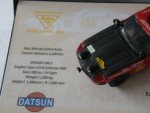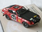 | Massstab | 1:43 |  durchsichtige Scheiben, grau-schwarzes Interieur, Motorhaube, Rückspiegel und Suchscheinwerfer an der A-Säule montiert, Scheibenrahmen, Heckblende, Reserverad im Kofferraum und Kotschutzlappen hinten. Chrom-Stossstangen  sowie 2 Zusatzscheinwerfer auf der Motorhaube und einer auf der Stossstange montiert und einer an der Heckstosstange. Dem 1971-er Rallyfahrzeug der East African Safari, der Fahrer Herrmann/Schuller, mit der Startnummer 11 nachempfunden. Kolorierte Lichter. Schwarze 4-Doppelsteg-Felgen mit Profilgummi-Reifen. Kleinserien-Handarbeits-Hersteller aus Japan in Displaybox montiert und mit Info-Aufdrucken und Rennszene-Foto