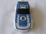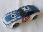 | Massstab | 1:43 |  schwarze, nicht durchsichtige Scheiben und Heckblende. Massives-Resine-Modellauto. Aufgesetzter Heckspoiler, Frotspoiler-Stossstange, Scheinwerferabdeckungen und Kotflügelverbreiterungen in Wagenfarbe. Hinten ohne Stossstange. Auf der Motorhaube und dem Dach ein weisses Zackenmuster mit der schwarzen Startnummer 8 und in weiss den Aufdruck 240 Z. Auf den Seiten ein rotes, stilisiertes Gesicht mit der schwarzen Startnummer 8 und dem roten Aufdruck "Nissan". Einem Rennfahrzeug der SCCN-1000-km Langstrecken-Meisterschaft von 1972, vom Fuji-Raceway, mit den Fahrern K. Takahashi und K. Tohira nachempfunden. Kolorierte Rücklichter. Feststehende, silbergraue 4-Steg-Felgen mit Resine-Räder