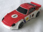 | Massstab | 1:43 |  schwarze, nicht durchsichtige Scheiben, Heckblende und Scheinwerferabdeckungen. Silberne Scheibenrahmen. Ausgearbeitete Kotflügelverbreiterungen, Heck- und Frontspoiler in Wagenfarbe einer zweifarbigen Karosserie. Rennfahrzeug aus einer Japanischen Rennserie nachempfunden, mit der schwarzen Startnummer 8 auf der Motorhaube und den Seiten und diverse Werbeaufkleber. Auf den Seiten rot-blaue Streifen vor den Türen. Kolorierte Rücklichter. Modell wurde massiv aus Resine gegossen ohne bewegliche Teile. Silberne 4-Steg-Felgen