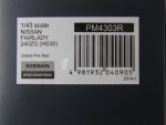 | Massstab | 1:43 |  durchsichtige Scheiben, schwarzes Interieur und Rückspiegel auf den Kotflügeln montiert. Dunkelgraue Kotflügelverbreiterungen, Heckspoiler, Heckblende und Stossstangen. Chrom Scheibenrahmen, Türgriffe und Embleme. Kolorierte Lichter mit Glasabdeckungen auf den Scheinwerfern. Rechtslenker Japan Strassenvariante. Stahlfelgen mit Originalraddeckeln und Profilgummi-Reifen. Fahrzeug aus der Enthusiast Serie, als Resine-Kleinserien Handarbeitsmodell auf Holzsokel mit Alu-Plakette