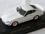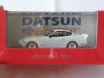 | Massstab | 1:43 |  durchsichtige Scheiben, schwarzes Interieur, Rückspiegel an der A-Säule montiert und Heckblende. Aufgesetzter Heckspoiler in Wagenfarbe. In silber gefärbte Details wie Scheibenrahmen, Scheibenwischer, Stossstangen, Türgriffe und Embleme. Kolorierte Lichter. Links-Lenker Strassenauto. Chrom 4-Steg-Felgen mit rotem Kranz und Profilgummi-Reifen. Fahrzeug aus der Zi:l Datsun-Racing Serie